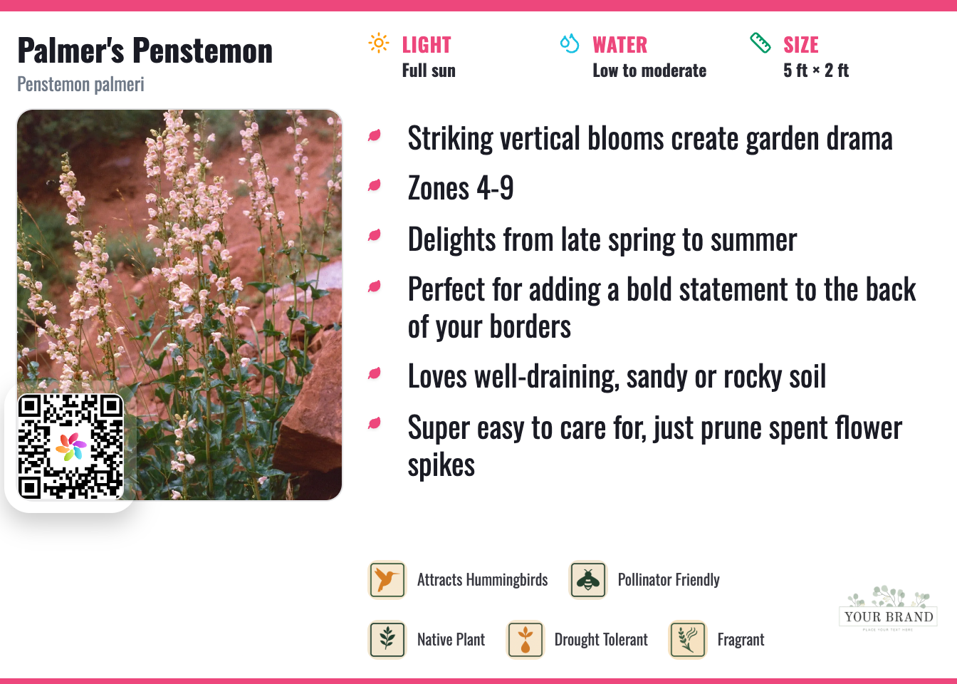 Output: One PDF containing hundreds of plant signs, each automatically populated with your plant data (names, descriptions, tags, awards, pricing, etc.)